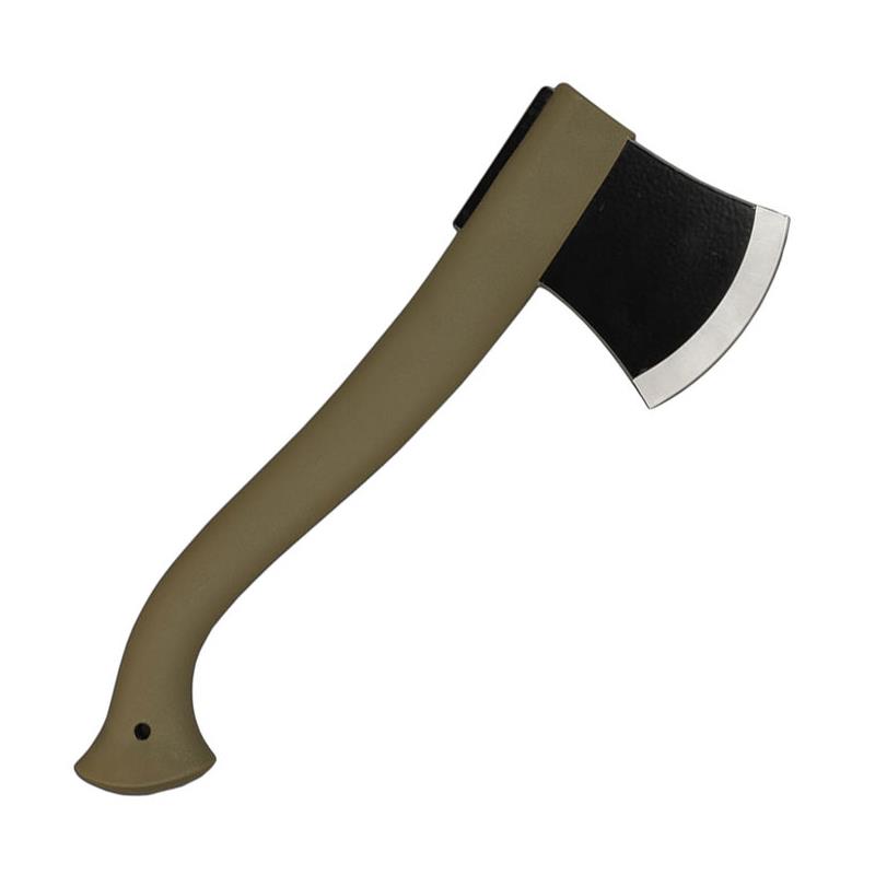 Características: • Acero: 12C27 (inox) • Longitud de la hoja (mm): 115 • Longitud total (mm): 330 • Mango (Acabado): Polímero • Color de la hoja: Negra • Perfil de la hoja: Hacha • Filo: Liso • Apertura de seguridad: Fijo • Funda: Cuero • Espesor de la hoja: 6mm