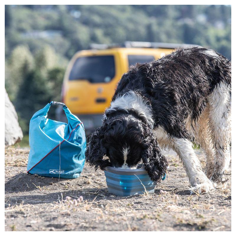 La bolsa está fabricada a partir de materiales duraderos y resistentes (tejido exterior 400 deniers) y puede contener hasta 2 kg de pienso seco. Un compartimento de almacenamiento en el fondo de la bolsa permite guardar el bol plegable COLLAPS A BOWL™ (no incluido).