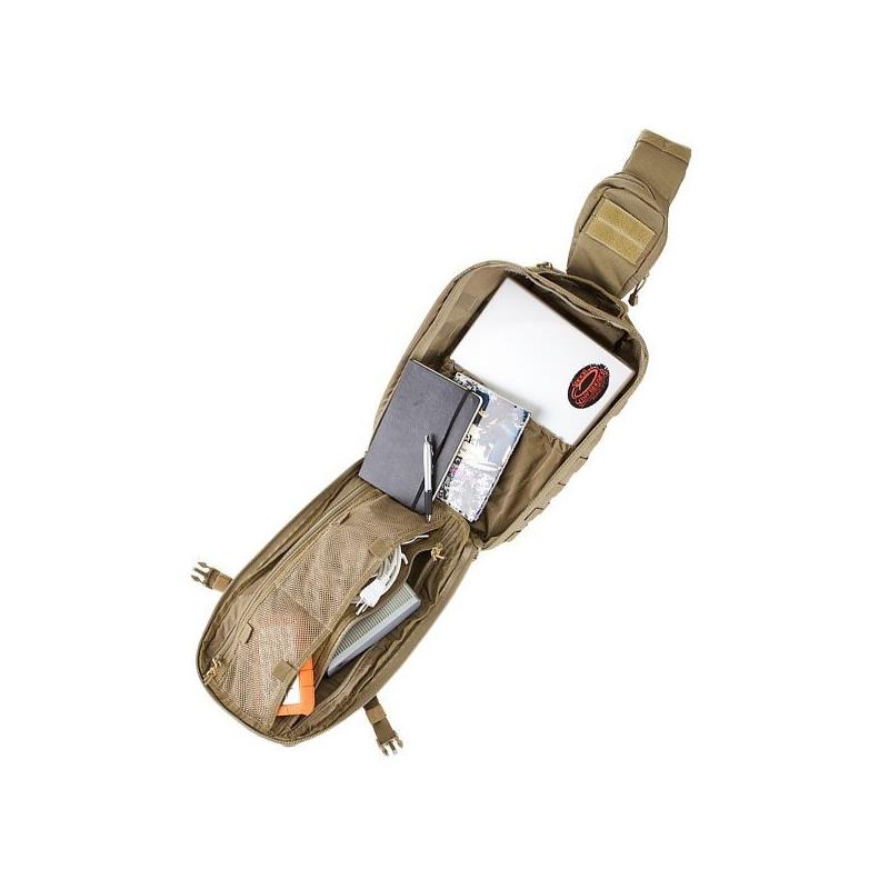 Características : • Correa cruzada con sistema de enganche extraíble para uso ambidiestro. • Bolsillo de radio con sistema de paso para micrófono y auriculares. • Compartimento discreto para pistola con sistema de cinturón trasero. • Bolsillo para depósito de hidratación de 1,5 litros. • Almohadilla trasera antideslizante y canales de ventilación. • Bolsillo para gafas de sol forrado en micro polar • Bolsillo de administración • Nylon 1050D resistente al agua, cremalleras YKK. • Asa y correas de compresión. • Compartimento principal : A 46cm x W 23cm x D 13cm (14 Litros) • Compartimento delantero : A 32cm x W 20cm x D 5cm (3.3 Litros) • Compatible con el sistema Rush Tier para ser fijado en las mochilas Rush.