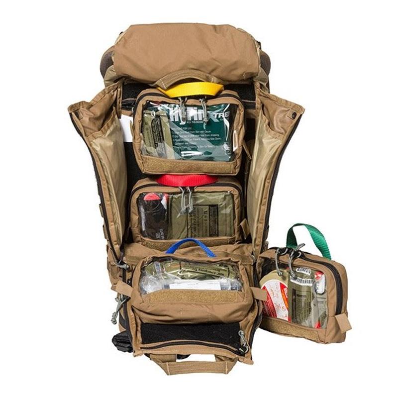 Características: • Mochila evolutiva según las misiones • Marco de transporte NICE para la comodidad y la estabilidad bajo las cargas más pesadas • Sistema de ventilación y estabilidad (BVS) en el marco • Arnés FUTURA ajustable según la longitud de la espalda • Cojín de espuma en el panel trasero • Asa superior interna para colgar la mochila abierta • Papelera interna para mantener un rastro de los artículos utilizados • 2 mangas internas pueden alojar férulas y artículos largos • Lazos molles en el exterior y en el cinturón • Bolsillo superior con cremallera para las vendas y las compresas • 2 bolsillos frontales con cremallera • Bolsillo inferior con cremallera • 6 bolsillos internos de Velcro® • Cinturón abdominal acolchado • Ubicación de parche para identificación • Volumen: 23 litros • Peso: 4.5 kg • Dimensiones: 51 x 30.5 x 14 cm • Cordura® 500D recubrimiento Teflon® contra el clima y los UV • Cremalleras YKK® impermeables, conformes IR • Hecho en USA