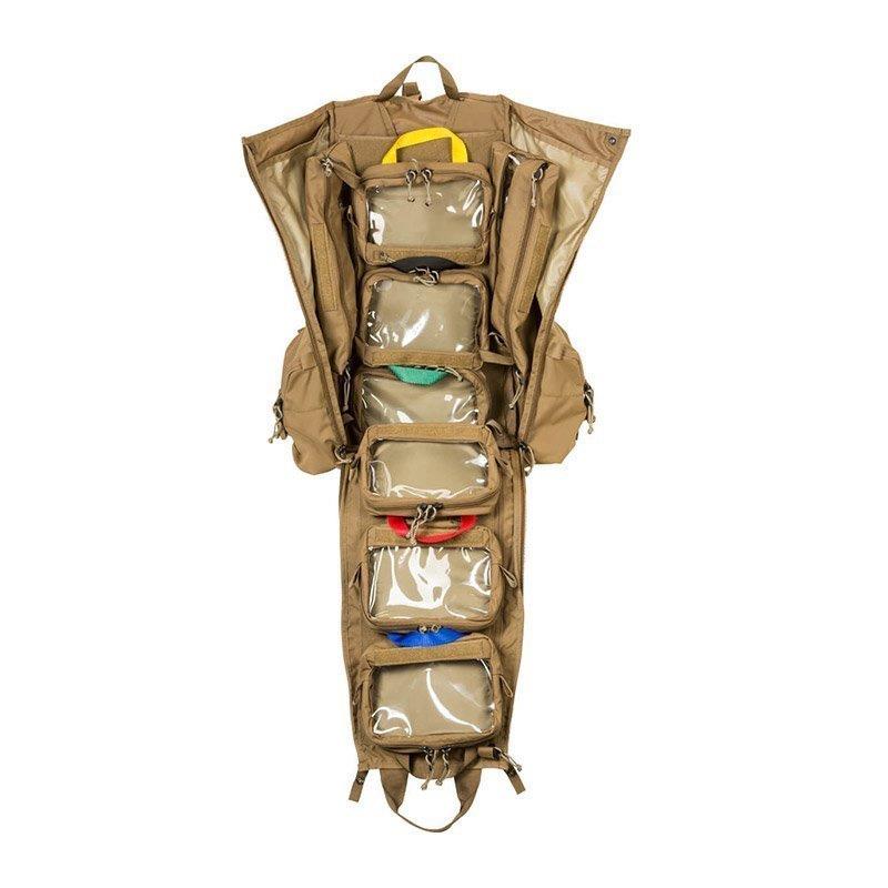Características: • Mochila evolutiva según las misiones • Armazón de transporte NICE para la comodidad y la estabilidad bajo las cargas más pesadas • Sistema de ventilación y estabilidad (BVS) en el armazón • Arnés FUTURA ajustable según la longitud de la espalda • Cojín de espuma en el panel trasero • Asa superior interna para colgar la mochila abierta • Bolsa de basura interna para rastrear los artículos usados • 2 mangas internas pueden alojar férulas y artículos largos • Correas molles en el exterior y en el cinturón • Bolsillo superior con cremallera para vendas y compresas • 1 bolsillo grande y un bolsillo de administración con cremallera en el frente • 2 bolsillos laterales con cremallera • 8 bolsillos internos de Velcro® • Cinturón abdominal acolchado • Espacio para parche de identificación • Volumen: 56 litros • Peso: 5 kg • Dimensiones aprox. : 78 x 51 x 31 cm • Cordura® 500D y cremalleras YKK® impermeables • Color : Coyote (COY) • Hecho en USA