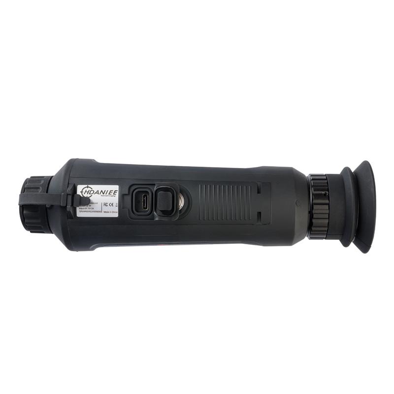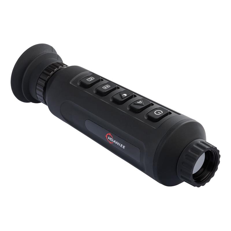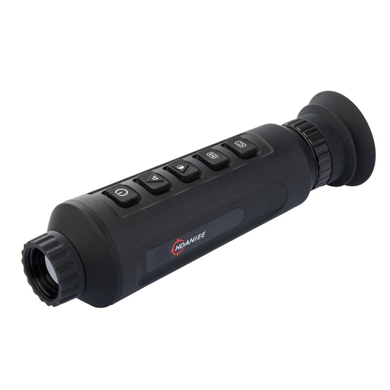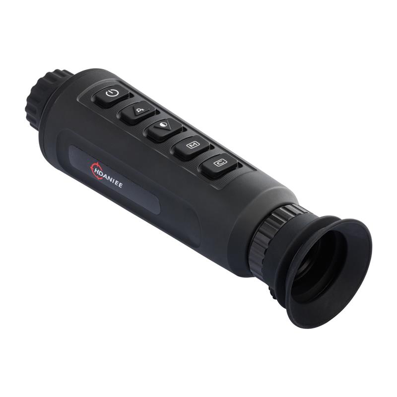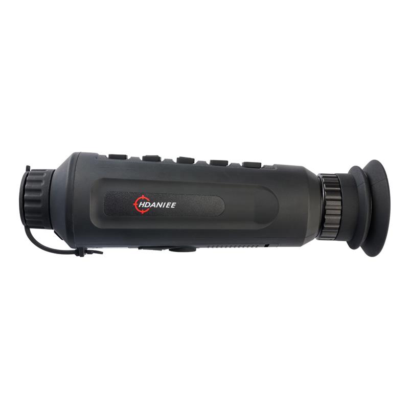 CE-19 Distancia focal 19 mm Campo de visión Detección 980 m Identificación 476 m Detector Tipo de detector Detector de oxido de vanadio no refrigerado Rango espectral 8 ~ 14 μm Resolución, tamaño del pixel 384 x 288 pixels, campo de visión de 12 μm (H*V) Ruido de 13,8° x 10,4° diferencias de temperatura equivalentes (NETD) <50 mK a 25 °C, F#1.0 Frecuencia de cuadros del detector ≤50 ips Pantalla OLED de 0,39 pulgadas, 1024 x 768 pixels, 50 Hz Brillo Contraste 5 niveles de ajuste Zoom digital X1, X2, X4, X8 Seguimiento de puntos calientes Soporta los colores pseudo-negro caliente, blanco caliente, rojo caliente, fusión, observación de aves Apoyo para la función de mira de red Caliente Soporta la grabación/captura de pantalla Soporta posicionamiento láser Soporta salida CVBS Soporta la alimentación externa Tipo-C, 5 V 1 A Energía 0,85 W (salida CVBS desactivada) Tipo de batería/rendimiento Batería de litio recargable, ≥8H Almacenamiento Módulo de memoria integrado (16G) Nivel de protección IP67 Dimensiones (mm)/Peso 58*62*215 / 400g