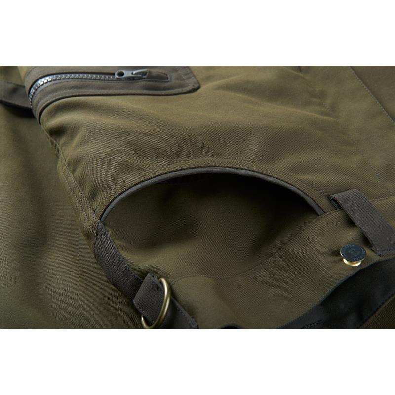 >Características : • Cierre con botón a presión • Bolsillos de fácil acceso • Botones de suspensión • Bolsillos en los muslos con cremallera y portacartuchos • Cremalleras de ventilación detrás de los bolsillos de los muslos • Cierre de nieve con CORDURA®.