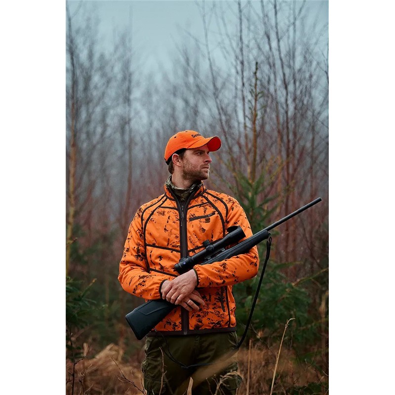Además, este forro polar es reversible, con un lado con el motivo de camuflaje InVis orange blaze y el otro lado de un verde neutro. Este forro polar posee dos bolsillos delanteros y un bolsillo para radio en cada lado.