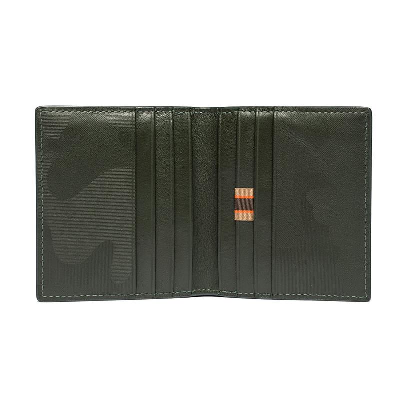 Porta tarjetas de crédito de dos pliegues Casual 100 % cuero con forro de poliéster. Caracterizado por el motivo de camuflaje impreso en el cuero con la técnica 3D.