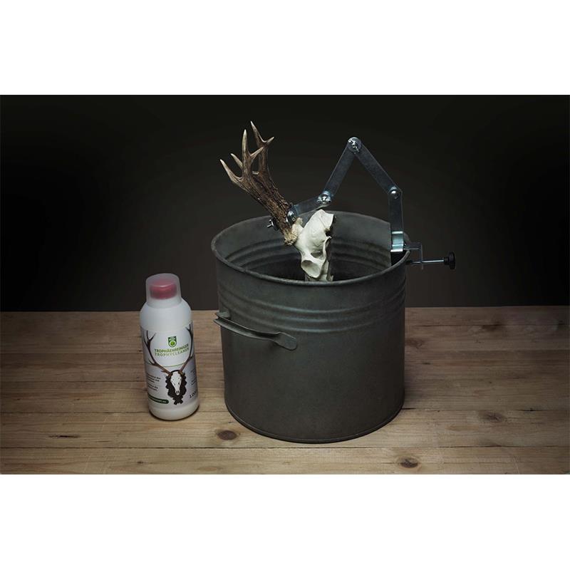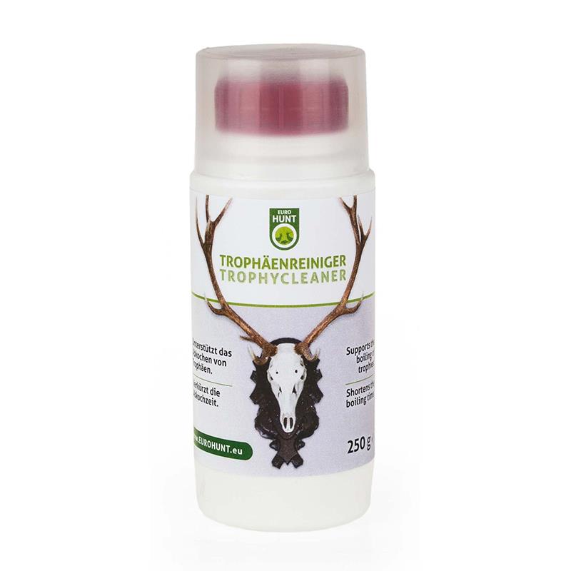 El limpiador para trofeos EUROHUNT es una ayuda eficaz para la limpieza de trofeos. Las sustancias contenidas en el producto favorecen la descomposición y la separación de los tejidos y del hueso, lo que reduce considerablemente el tiempo de cocción. Elimina la grasa y tiene un efecto blanqueador, lo que confiere un aspecto estético particularmente blanco. Para el blanqueamiento completo del trofeo, puede ser necesario utilizar una solución blanqueadora para trofeos EUROHUNT.