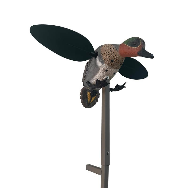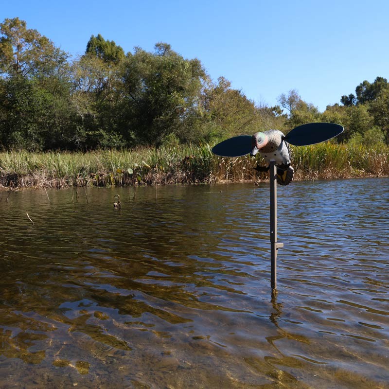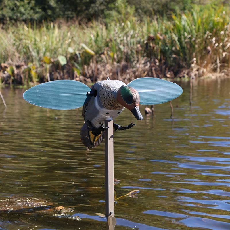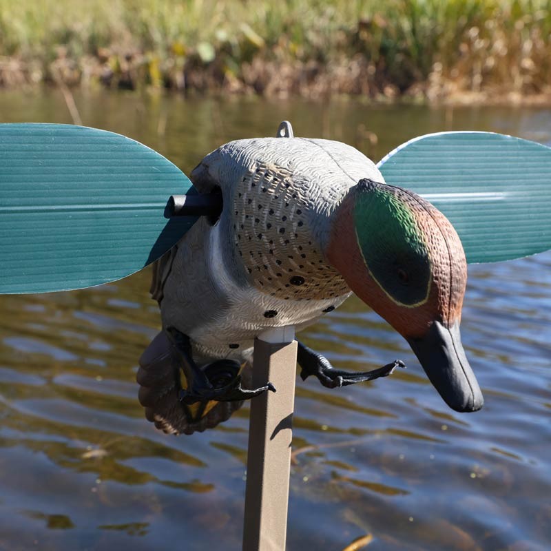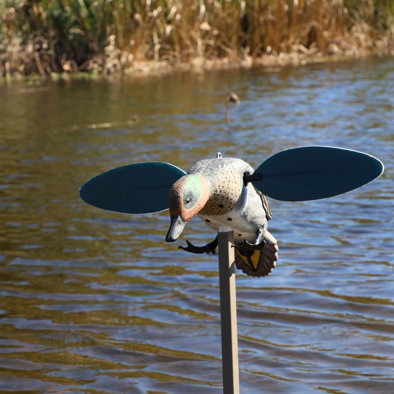 - Atracción versátil : Aunque imita a un macho de cerceta de alas verdes, la velocidad de rotación ultrarrápida de sus alas atrae eficazmente a ánades reales, ánades rabudos, patos cuchara y a los patos buceadores.