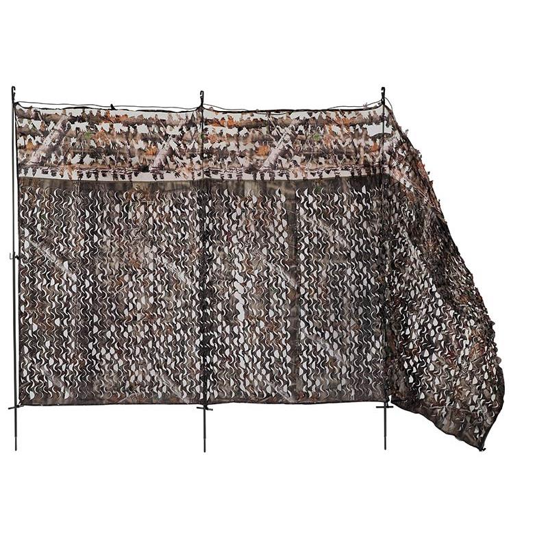 Escondite de camuflaje 3D bosque bi-material parte superior perforada anti-UV, anti-reflejo 3 patas ajustables en altura vendido con asa de transporte.
