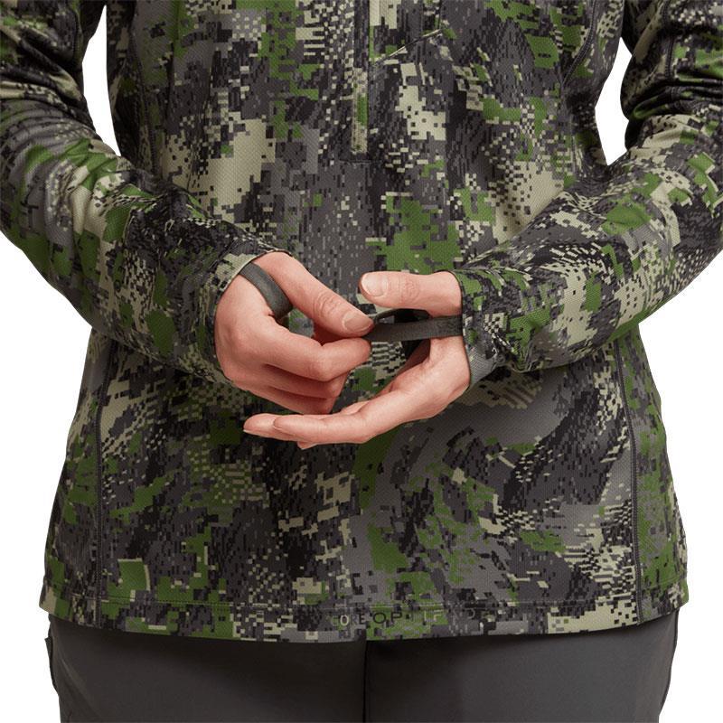 La sudadera ligera con capucha Core para mujer es la referencia en desempeño entre la ropa interior sintética ligera. Tan eficaz solo en tiempo caliente como base de cada sistema SITKA, su avanzada construcción de punto de poliéster elimina el sudor y se seca rápidamente. La tecnología Polygiene® Odor Control minimiza los olores. Su capucha integrada, su máscara de malla elástica y sus pulgareras hacen un conjunto completo para más comodidad y discreción.