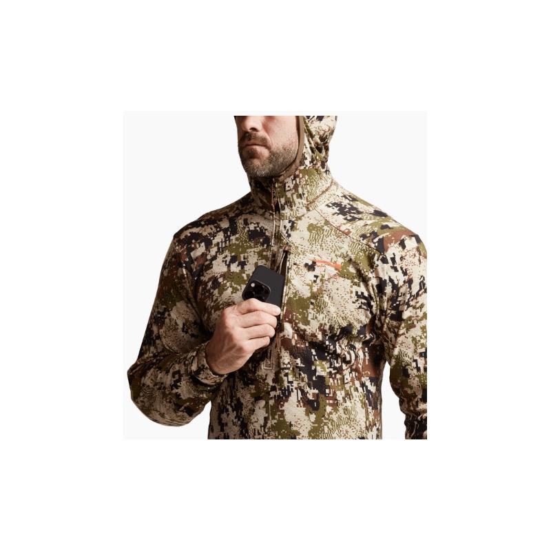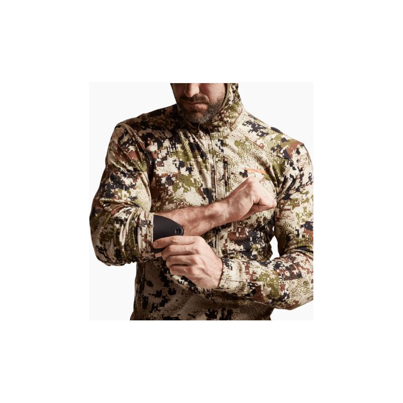 Acercarse a los alces, ciervos mulos y otros caza mayor requiere sigilo. Hemos diseñado la sudadera con capucha Intercept para ofrecer la mejor supresión de sonido, olor y vista para ayudarte a ponerte al alcance del arco. Está construida con una mezcla de lana merino ultra-silenciosa que resiste naturalmente los olores para minimizarlos y regula la temperatura cuando alternas entre parar y seguir. Y como probablemente tu enfoque implique arrastrarte por el matorral, rocas y espinas, hemos reforzado nuestra lana merino ArmorSpun con nylon y añadido coderas removibles para asegurar que tiene la durabilidad robusta necesaria para la caza con arco.
