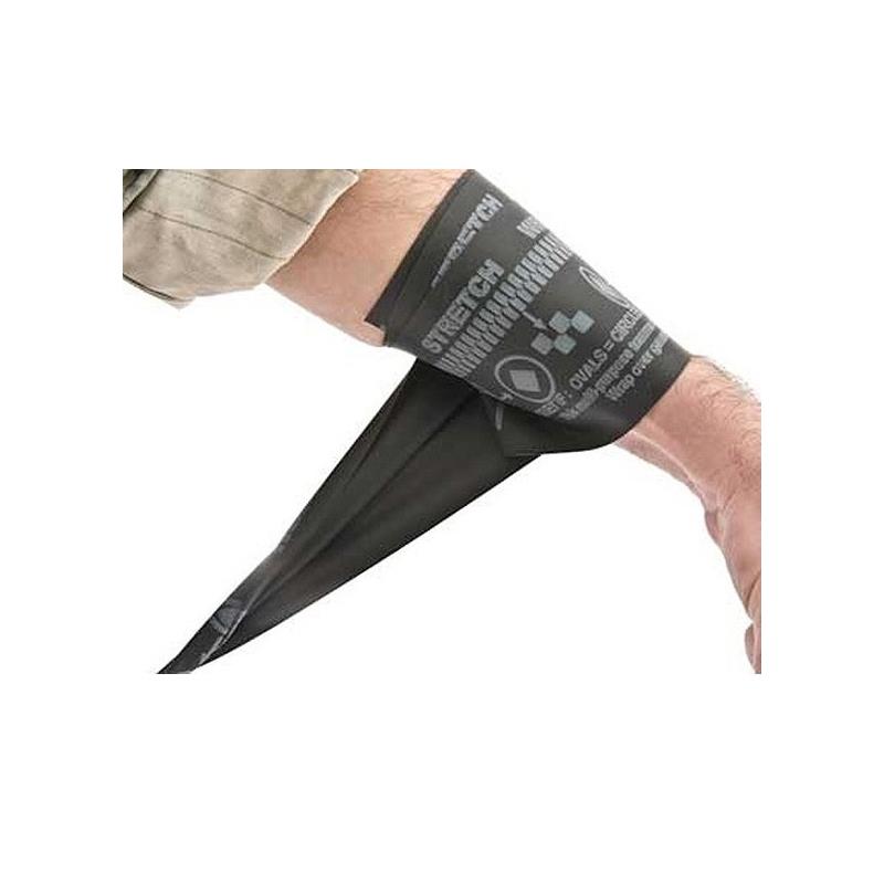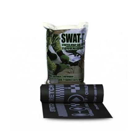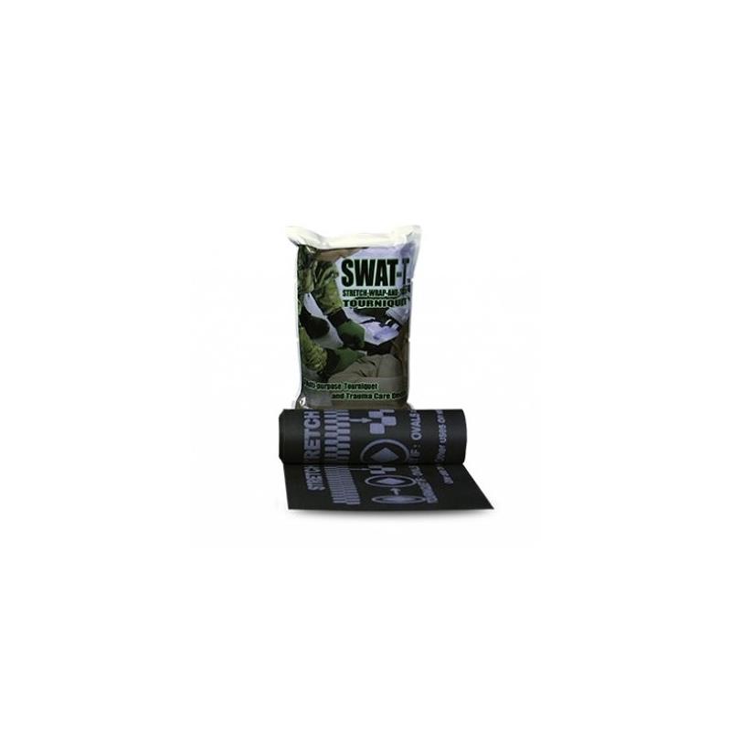 El torniquete SWAT-T de color negro proporciona un medio rápido para controlar el sangrado. Permite detener una hemorragia comprimiendo los vasos mediante la tensión elástica del torniquete. Muy fácil de implementar, se enrolla alrededor de la herida y se ata.
