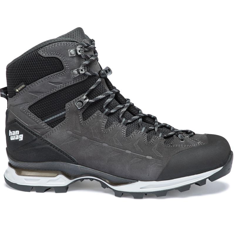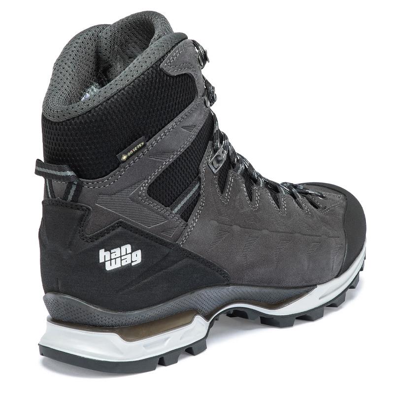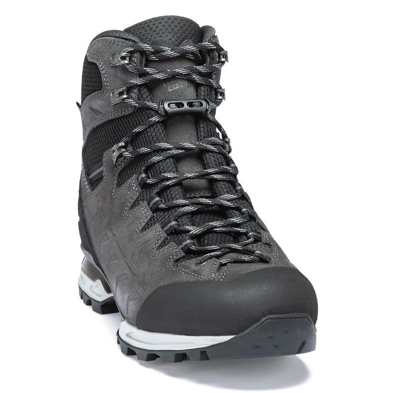 El nuevo Makra Trek GTX tiene un aspecto colorido y deportivo muy especial. Es el zapato ideal para excursiones exigentes en los Alpes con una mochila ligera y hasta 3.000 metros de altitud. La construcción de la suela Vibram Integral Light es muy ligera y cómoda gracias al diseño especial de la banda de rodamiento y a la tecnología Hanwag 3D Prism Base. El resultado es una amortiguación perfecta combinada con una gran estabilidad, que se refuerza aún más por la baja altura de la suela. El "Hanwag 2 Zone Lock" con bloqueo mecánico de los cordones mejora el ajuste en el talón. A diferencia de los ganchos de apriete de cordones clásicos, el bloqueo mecánico de los cordones permanece fijo y no puede deslizarse a menos que se ajuste manualmente. Y puede ser ajustado con una sola mano. Gracias a la membrana impermeable GORE-TEX, este zapato mantiene sus pies secos en tiempo húmedo. El cuero de la parte superior de Perwanger es robusto, transpirable y duradero. Esta combinación de materiales de alta calidad ofrece un rendimiento confiable.