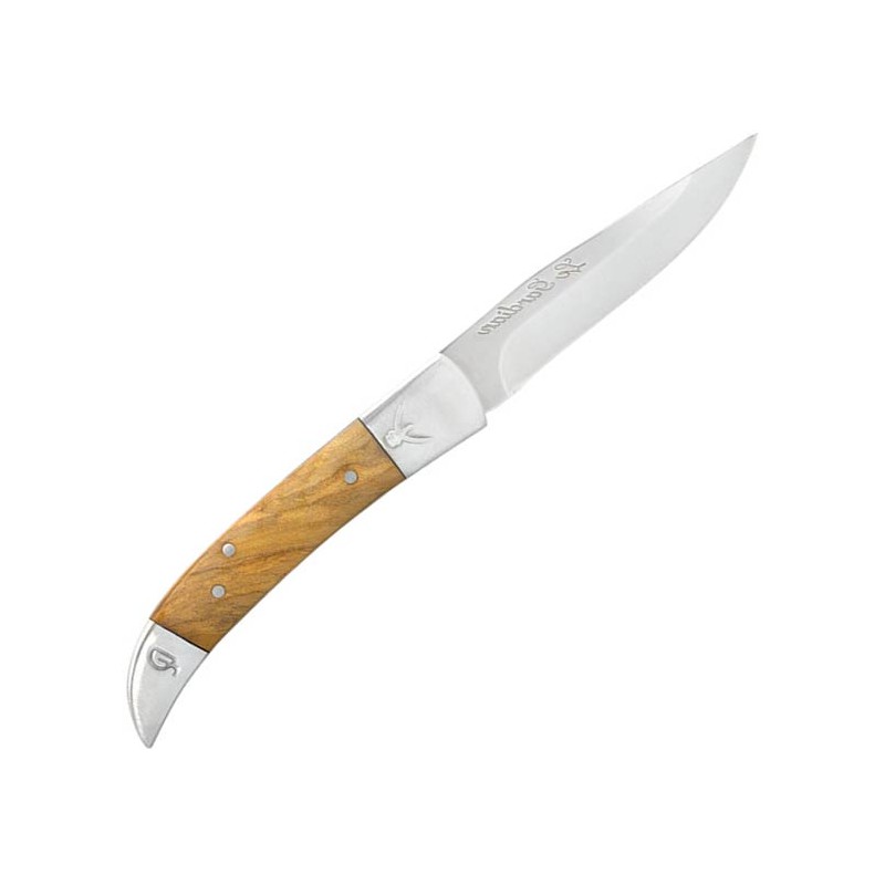 L'acier Inox de cette lame permet un entretien simplifié, mais un affûtage régulier reste la clé d'une efficacité constante en action de chasse. Pour préserver l'aspect satiné du manche en olivier et éviter que le bois ne travaille avec l'humidité, il est conseillé de le frotter occasionnellement avec un chiffon doux imprégné d'un peu d'huile végétale, ce qui renforcera également sa protection contre les agressions extérieures.