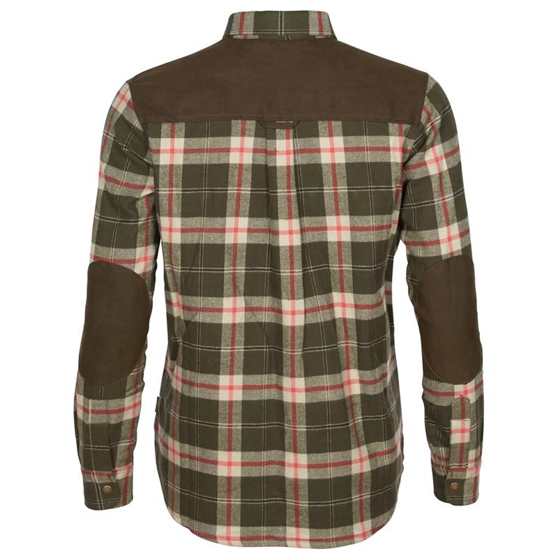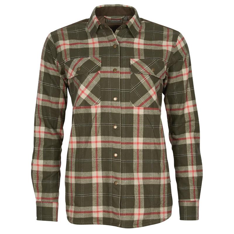 Camicia femminile in flanella morbida con membrana antivento e idrorepellente. Bei dettagli in pelle scamosciata sintetica sulle spalle e sui gomiti. Bottoni a pressione pratici. Polsino con chiusura a bottoni regolabile. Nessuna cucitura sigillata.