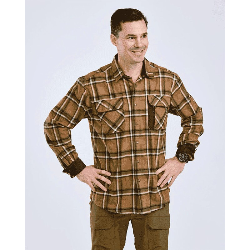 Camicia in flanella esclusiva e resistente, disponibile in splendidi colori. Foderata in mesh High-Vent™ per il massimo comfort. Due tasche pettorali con patta e una tasca con zip. Pulsanti a pressione.