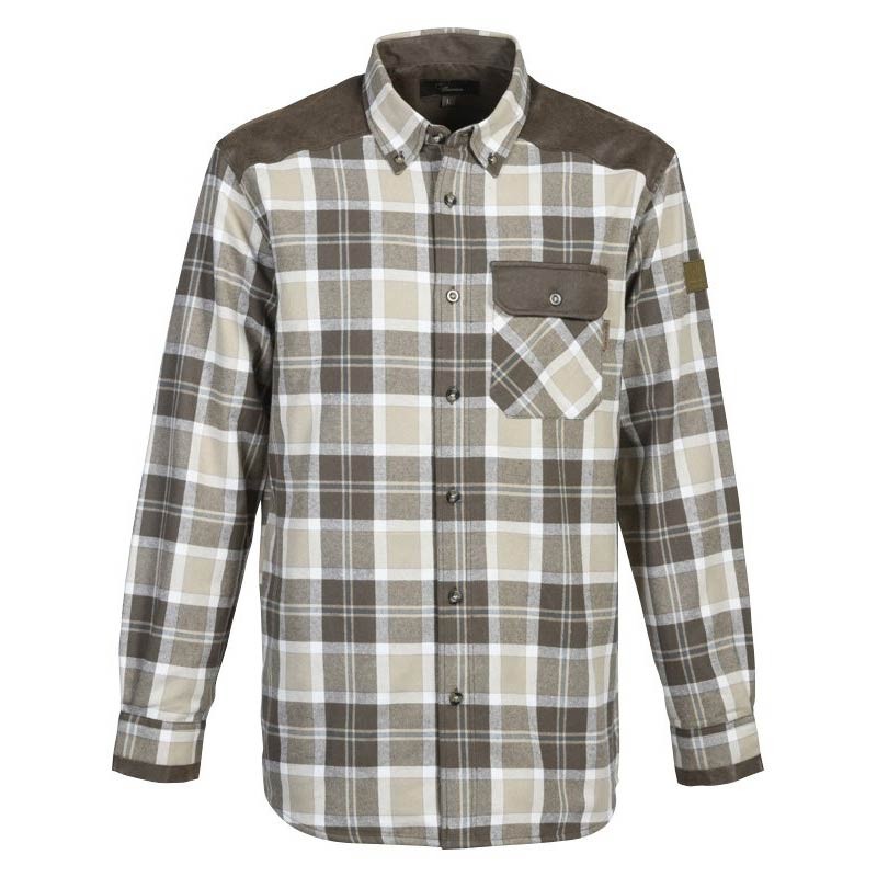 • Camicia antivento 100% cotone con membrana "wind blocker" 100% poliestere. • Inserti in suédine sulle spalle e sui gomiti 60% cotone e 40% poliestere. • Una tasca sul petto con bottone.