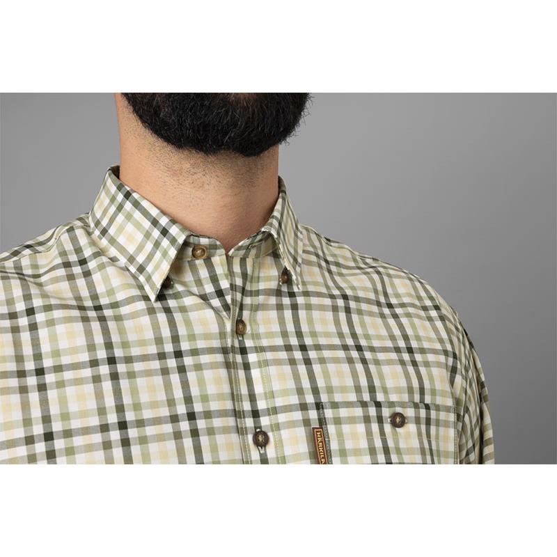 La camicia Milford è tagliata in un tessuto 100 % cotone. Presenta una tasca sul petto chiusa da un bottone sul lato sinistro, un colletto alla americana, nonché due bottoni su ogni polsino. Il suo tessuto anti-piega non necessita di stiratura.
