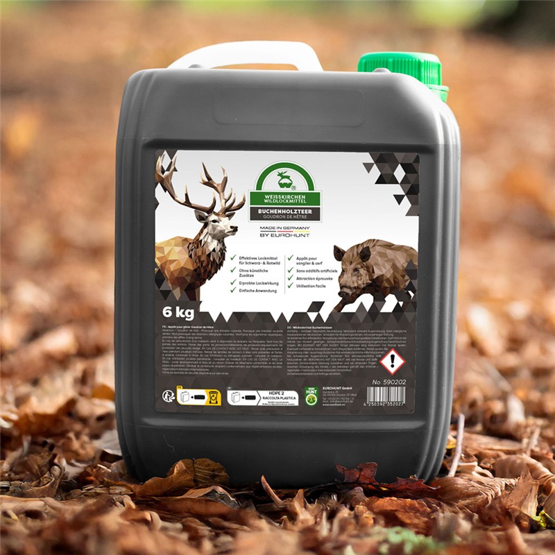 Il catrame di faggio è estremamente efficace per attirare e fidelizzare i cinghiali e i cervi sul vostro territorio. Favorisce l'eliminazione dei parassiti presenti sulla pelle degli animali.