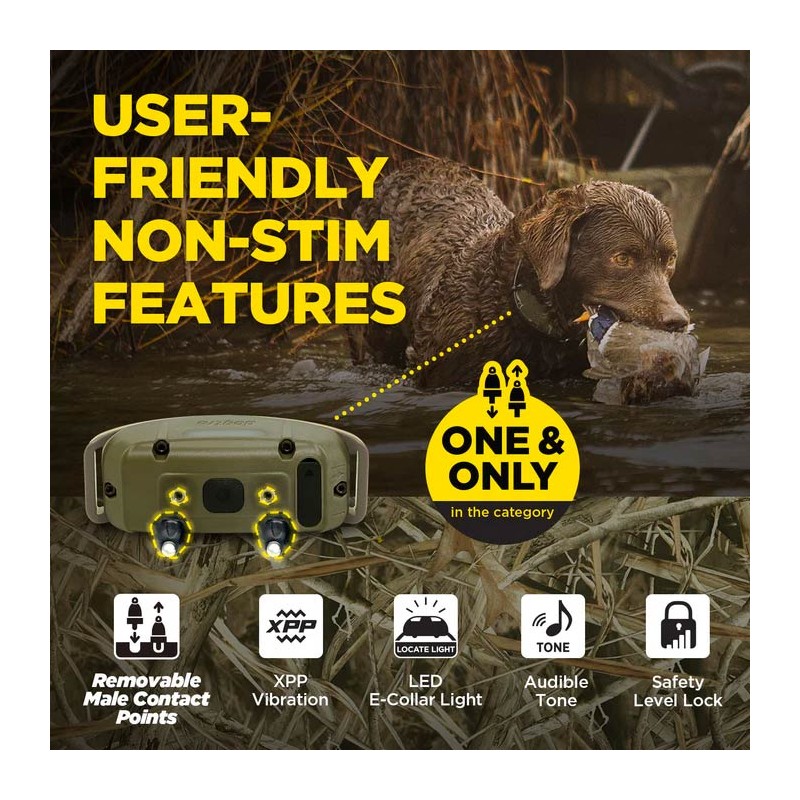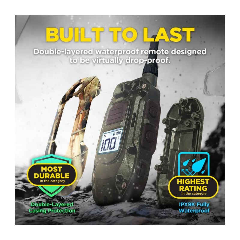 Il Dogtra 1200X Camo è progettato per le cacce difficili e l’addestramento intensivo. Con una portata di 1200 m, la funzione BOOST per un richiamo rapido e la vibrazione XPP per un ritorno preciso, offre prestazioni affidabili. Il suo robusto design mimetico si fonde con l'ambiente, e la sua progettazione completamente impermeabile IPX9K resiste alle condizioni più estreme. La custodia protettiva del ricevitore ne aumenta la durata, e una luce LED mantiene il vostro cane visibile in condizioni di scarsa luminosità. Che siate in zone umide o in foresta, il 1200X Camo è adatto a tutti gli ambienti.
