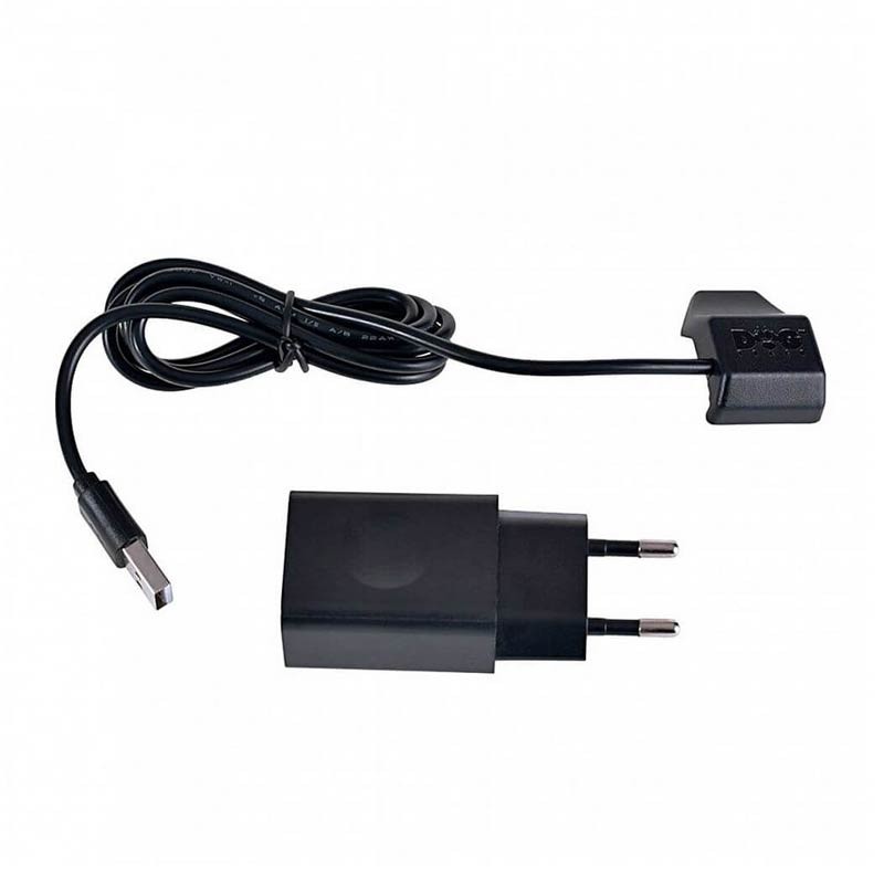 Versione corta del trasmettitore (collare) con batteria Li-Pol 1900 mAh e cinturino in plastica 20 mm × 55 cm Adattatore di rete con cavo USB e clip di ricarica per DOG GPS Istruzioni e carta di garanzia