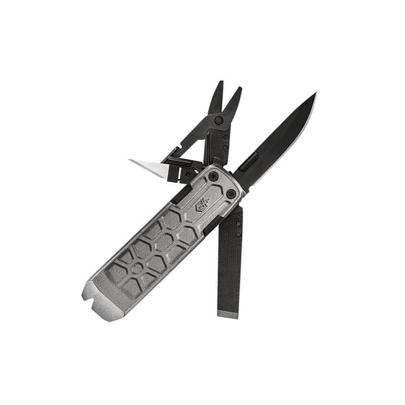 Caratteristiche : • Lama a filo liscio da 2-1/2" con blocco del telaio • Barra di leva in ghisa • Apribottiglie • Forbici • Lama #11 sostituibile • Dorso • Scalpello • Cacciavite a testa piatta grande e piccolo • Estrattore di chiodi • Lunghezza chiusa : 10cm • Lunghezza aperta (coltello aperto) : 17cm • Lunghezza della lama : 6.35cm • Larghezza : 1.42cm • Garanzia a vita limitata