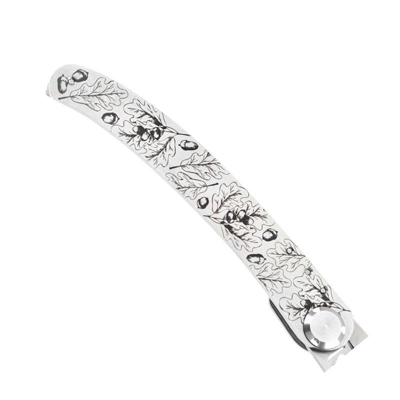 Il coltello da tasca Chêne è un bellissimo pezzo di coltelleria con una vera incisione artistica realizzata dal team Le Coq Français. Fedele ai suoi valori la marca lavora su prodotti fabbricati 100 % in Francia e propone un concetto che valorizza la cultura e il patrimonio francese.