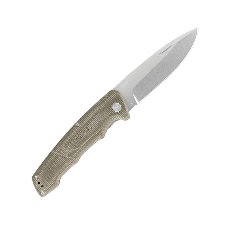 Caratteristiche : • Forma della lama : punta a lancia • Materiale della lama (acciaio) : D2 • Lunghezza lama (in mm): 104 • Materiale del manico : Micarta • Lunghezza aperta (in mm) : 237 • Lunghezza chiusa (in mm) : 133 • Peso (in g): 202