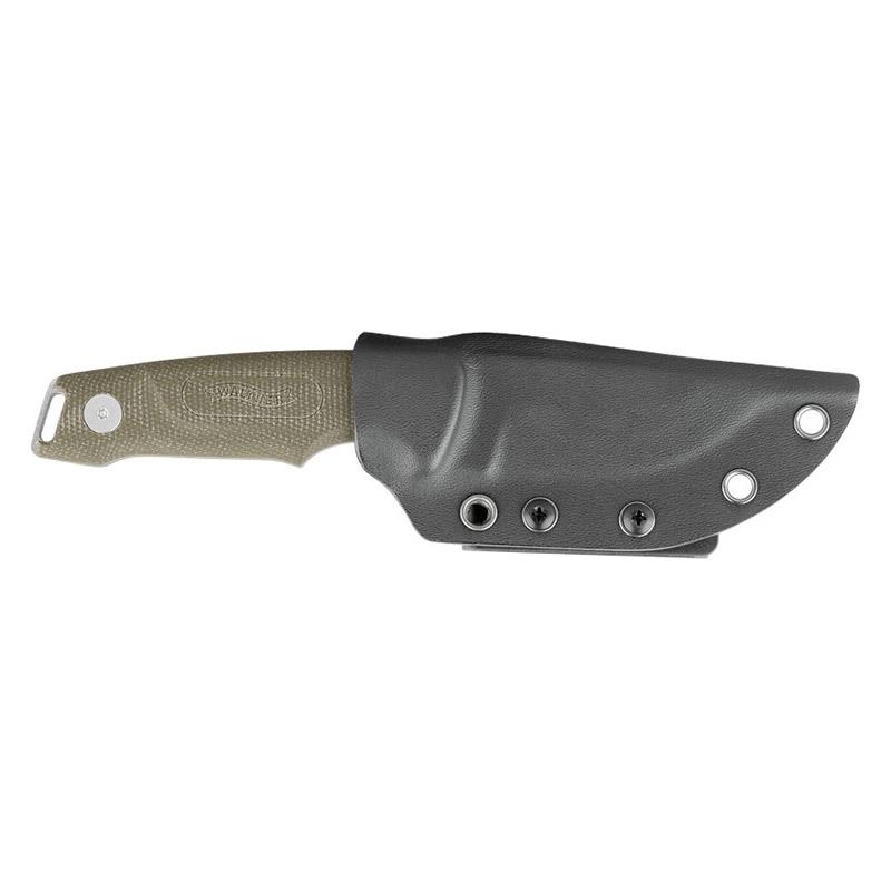 Caratteristiche : • Forma della lama : Drop-point • Materiale lama (acciaio) : D2 • Lunghezza lama (in mm): 84 • Materiale manico : Micarta • Lunghezza totale (in mm) : 192 • Peso (in g): 150