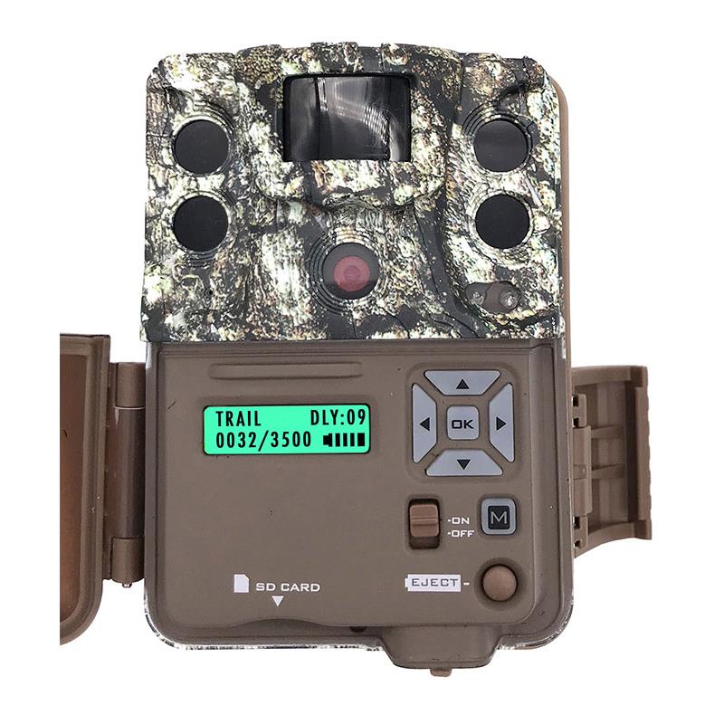 caratteristiche : - risoluzione foto massima : 18 mp (4 livelli di risoluzione : 18 mp / 8 mp / 4 mp / 2 mp) - portata a infrarossi fino a 25m (850nm) tramite diodi a infrarossi ad alta potenza di ultima generazione - rilevamento molto rapido in 0.3 secondi e ripresa in 0.6 secondi (ritardo regolabile fino a 60 min) - distanza di rilevamento fino a + di 20m - accetta le schede sd con capacità fino a 32go - programmazione tramite menu a tendina su schermo interno monocromatico retroilluminato - molto compatto : 10,5 cm x 8 cm x 5 cm - possibilità di scrittura in loop - nessun rumore durante lo scatto - cattura fino a 4 foto in raffica ad ogni rilevamento, con 2 modalità diverse di raffica : rapido (2 foto per sec) o lento (1 foto ogni 2 sec) - registrazione video hd 720p con audio (durata da 5 sec a 2min, limitazione a 20 sec la notte) - sovrimpressione (disinseribile) con data, ora, fase lunare, temperatura (celsius/fahrenheit) e nome programmabile - modalità timelapse sequenziale parametrizzabile - funziona con 6 pile aa (non fornite) (autonomia di + di 15000 foto o quasi 12 mesi con pile lithium energizer), inserite in un carrello rimovibile - connessione esterna per alimentazione possibile da batteria 12v o rete tramite trasformatore adeguato - filetto standard 1/4" - modalità test di posizionamento - fornito con cinghia in nylon con fibbia metallica