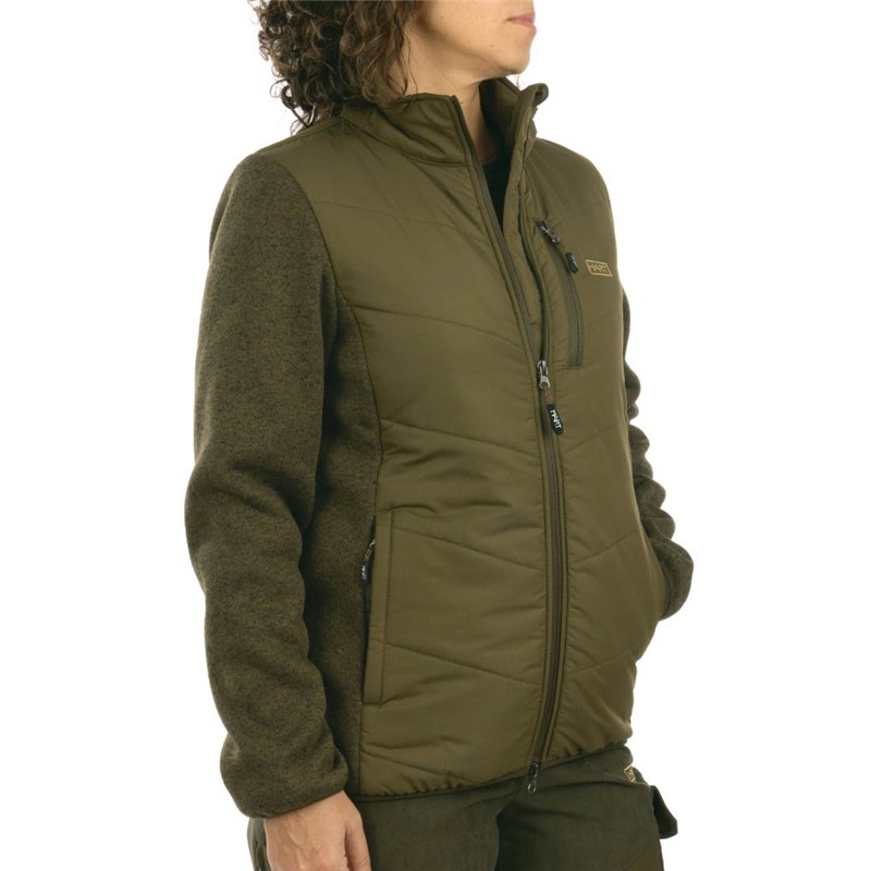 Il corpo è composto da pannelli imbottiti classici che trattengono il calore, mentre il tessuto in pile sui fianchi e sulle maniche garantisce una vestibilità aderente e di stile. Con le sue tre tasche frontali con zip, questo capo permette di tenere i tuoi oggetti essenziali al sicuro e a portata di mano.