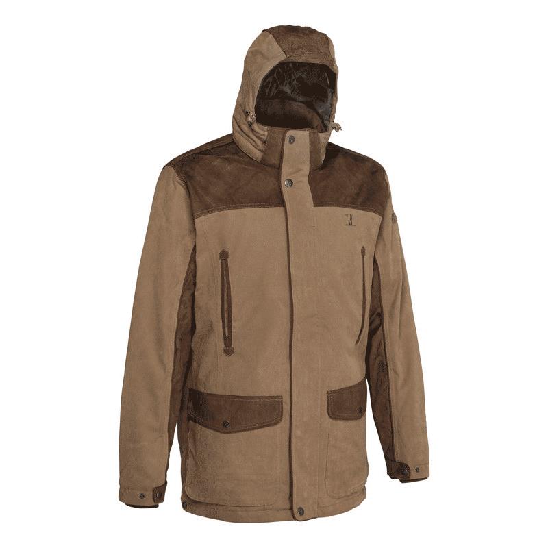 Caratteristiche: • 85% poliestere, 15% poliammide con membrana in poliuretano laminato • Impermeabile e traspirante • Cuciture sigillate • Inserti e dettagli in camoscio sintetico al 100% poliestere • Fodera trapuntata al 100% poliestere • Zip di ventilazione sotto le braccia • 1 tasca napoleonica, tasche per le mani • 2 grandi tasche basse con 2 file di portacartucce integrati (proiettili e piombi) e patta di apertura • 6 tasche interne, tra cui una tasca per i braccialetti e una tasca per il telefono • Tasca per la selvaggina con fodera impermeabile e lavabile staccabile su 3 lati • Cappuccio regolabile e removibile