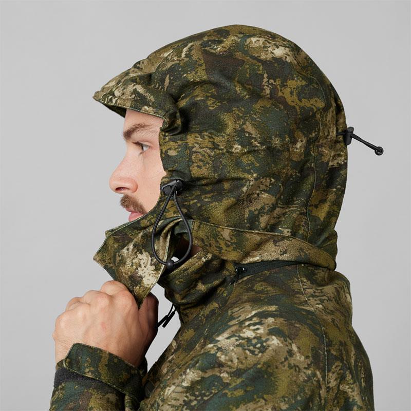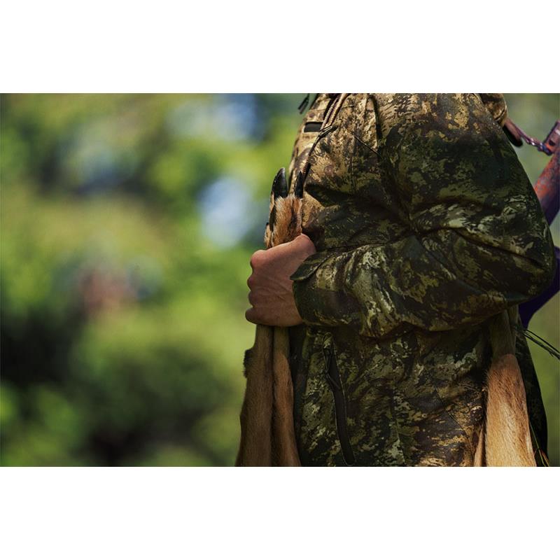 La giacca Avail Camo è tagliata in un jersey spazzolato e silenzioso, dotata del motivo mimetico InVis, messo a punto da Seeland. Questo motivo è stato concepito per funzionare durante diverse stagioni, per mimetizzarvi sia quando cacciate il cervo sia durante le battute di caccia di inizio autunno. Inoltre, questa giacca è dotata della nostra membrana SEETEX® antivento e impermeabile (resiste a una pressione d'acqua di 10 000 mm), per mantenervi asciutti quando cacciate, anche in caso di forti rovesci.