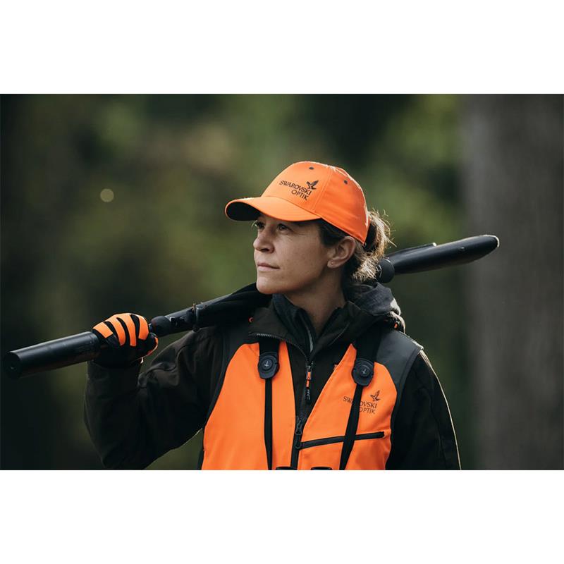 Molto visibile, questo giubbotto da caccia SWAROVSKI OPTIK nei colori arancione segnalazione e verde è appositamente progettato per la caccia in battuta. È molto confortevole da indossare, grazie al suo materiale particolarmente leggero e traspirante, nonché alle ampie giromaniche elastiche. Le cerniere sono eccezionalmente silenziose, e le tasche sul petto e sui lati permettono di riporre attrezzature e munizioni. Spacchi laterali consentono inoltre di accedere facilmente alle tasche del giubbotto.