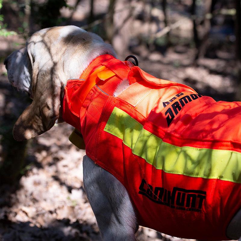 Il gilet DOG ARMOR V3 ® è un gilet di protezione destinato ai cani da caccia per la grande selvaggina. Offre caratteristiche tecniche ultra-performanti grazie alle sue innumerevoli specificità nonché un comfort massimo per i cani. Il suo colore arancione fluo rende il cane visibile durante le vostre azioni di caccia.