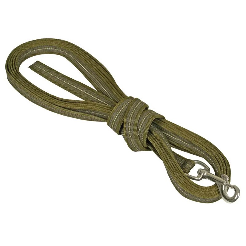 L'uso di una longe gommata è particolarmente raccomandato per la ricerca al sangue perché non scivola dalle mani, anche quando è sporca d'umidità. Assicuratevi di lasciare sempre che la longe scorra tra le dita senza avvolgerla intorno alla mano per prevenire qualsiasi rischio di lesioni in caso di una partenza improvvisa del cane su una traccia fresca.
