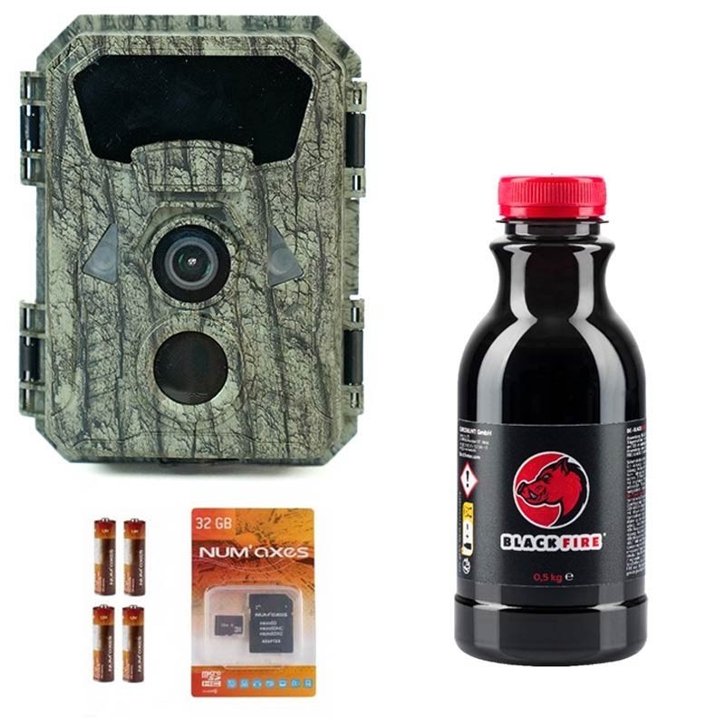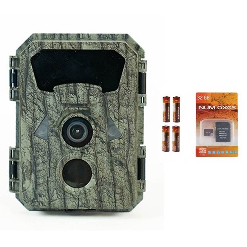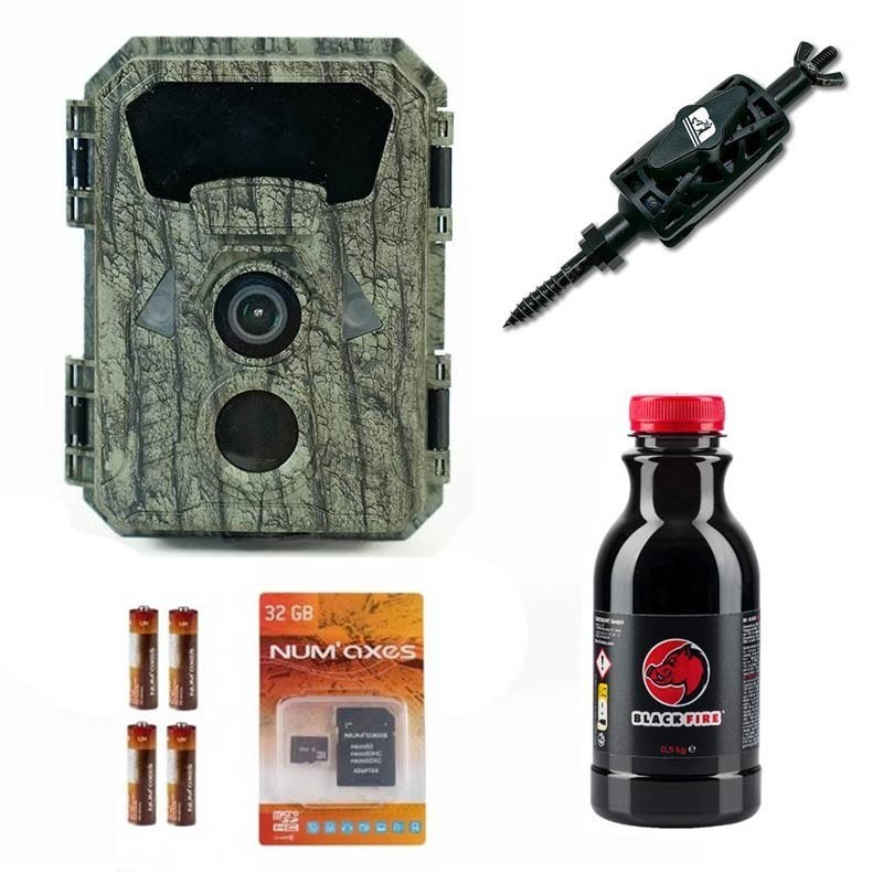 Questo pack comprende : • 1 fototrappola Chasseur.com • 4 pile AA • 1 scheda di memoria 32 GB • 1 cinghia di fissaggio • 1 supporto di fissaggio orientabile • 1 kit viti/tasselli • 1 Istruzioni per l'uso in Français/English/Espagnol/Deutsch/Italiano/Portuguese