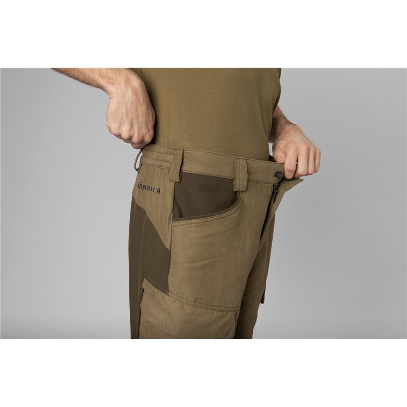Il pantalone Härkila Scandinavian è tagliato in un tessuto molto morbido per garantirti un avvicinamento silenzioso, ma sufficientemente resistente per accompagnarti nella manutenzione di una tenuta di caccia o in altre attività all'aperto. Incredibilmente confortevole, possiede numerose funzionalità pratiche, tra cui zip di ventilazione, una tasca per cellulare, un porta-cartucce e una chiusura magnetica silenziosa alle tasche.
