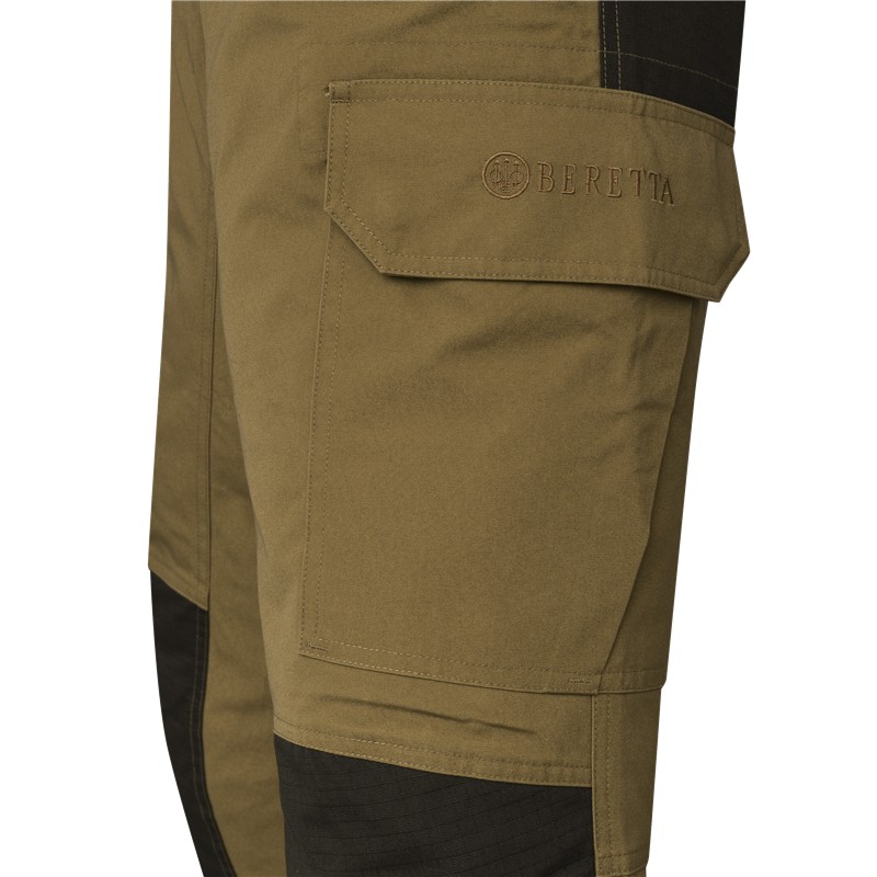 • pantalone jabali da caccia per uomo, ideale per la caccia attiva in ambienti aperti così come per tutte le attività all'aperto. • realizzato con un tessuto a costruzione ripstop che unisce cotone e poliestere ad alta tenacità. • il cotone assicura un comfort ottimale, mentre il poliestere ad alta tenacità rinforza la resistenza all'abrasione. • il trattamento dwr (durable water repellent) permette alle gocce d'acqua di scivolare sul tessuto, proteggendo efficacemente dall'umidità derivante dalla vegetazione. • questo pantalone può essere abbinato a tutte le camicie e tutte le t-shirt beretta. • cintura elastica tasca laterale • tasche cargo laterali con chiusura a bottone • tasca posteriore con chiusura a bottone • logo beretta ricamato sul retro • taglio : regolare • 60% pes, 40% co