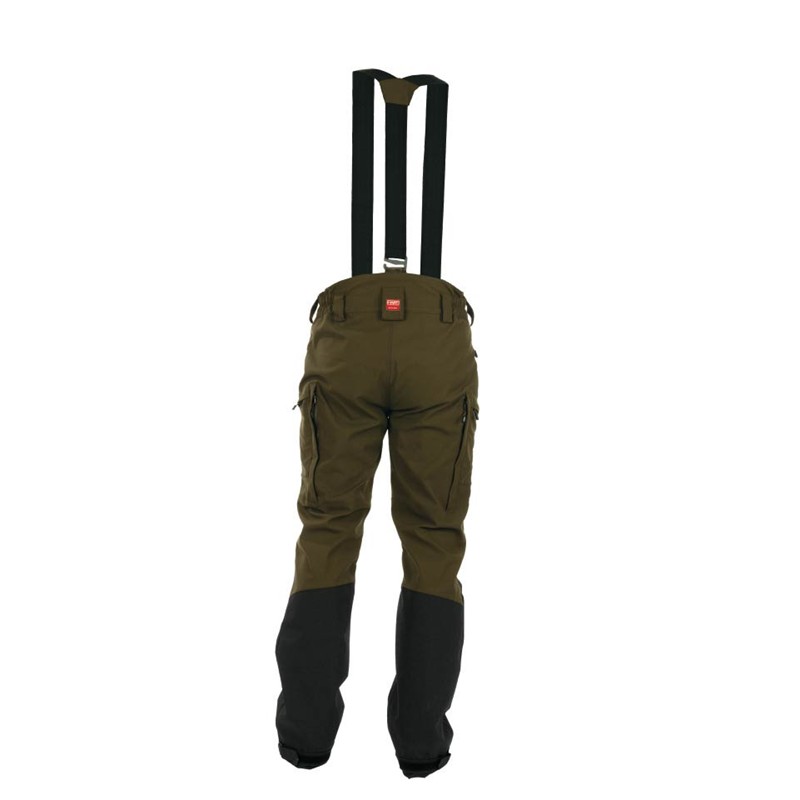 Tessuto resistente con proprietà elastiche nella parte superiore per maggiore comfort e libertà di movimento. Rinforzi speciali in KEVLAR® ARMORTEX sulle gambe con doppio strato interno per una migliore protezione. Concezione a 4 tasche : 2 tasche anteriori con zip, 2 tasche cargo laterali con zip. 2 cerniere di aerazione sul lato posteriore. Il sistema innovativo HLS (Hook & Loop System) permette di regolare facilmente il fondo del pantalone e può essere rimosso facilmente se necessario. Alta impermeabilità (10 000 mm) e traspirabilità (10 000 g/m²). Bretelle HART incluse, con sistema HLS a sgancio rapido.