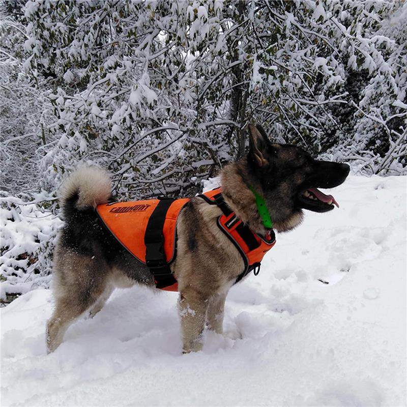 questa imbracatura arancione fluo permette di visualizzare il cane e quindi di localizzarlo meglio durante un'azione di caccia e di segnalarlo ai terzi (cacciatori, automobili...) il cane è visibile in ogni situazione grazie al bordo riflettente posto tutt'intorno all'imbracatura. tessuto esterno molto resistente che risponde alle esigenze abrasive dei biotopi più aggressivi. l'anello centrale sulla schiena dell'imbracatura permette di attaccare il cane a un guinzaglio o a una longe per effettuare ricerche di selvaggina con cani da sangue o limieri. la cinghia regolabile comprende una parte elastica per adattarsi al meglio alla morfologia del cane ed evitare di comprimerlo durante la respirazione. l'interno dell'imbracatura è stato concepito per favorire il comfort del cane. l'ergonomia permette di non limitare i movimenti del cane sia da fermo che in azione.