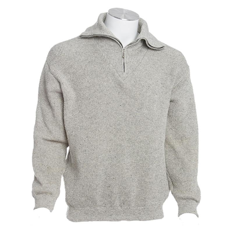 Maglioni 30 % lana, 70 % acrilico dallo spirito rustico ritrovato, maglia inglese e bordo a coste doppio. Molto caldi per i periodi di freddo. Maglia inglese diritto e rovescio. Prodotto lavato e ammorbidito per un tocco morbido. Gamma interamente fabbricata in Francia. Collo camion con zip.