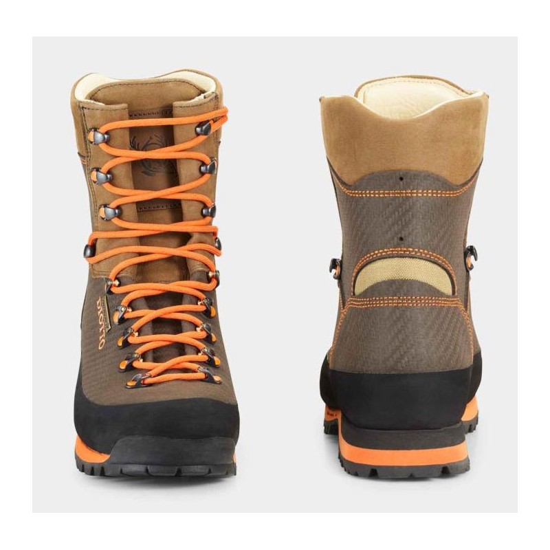 I ganci per i lacci sono in acciaio di colore arancione, per essere visibili da lontano. L'intersuola, anch'essa arancione, realizzata in un materiale microporoso, offre un buon ammortizzamento che rende la camminata libera e leggera. Collo in cuoio nabuk dotato di cuciture speciali che favoriscono il movimento della caviglia garantendole al tempo stesso un buon sostegno.