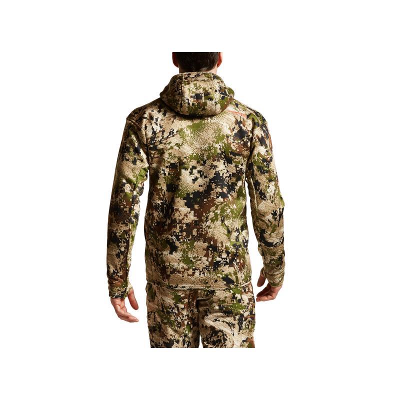Caratteristiche : • Tessuto in maglia di poliestere silenzioso con interno in pile berbero molto soffice e voluminoso • Tessuto eco-responsabile realizzato con materiali riciclati • Pannelli in pile di spessore medio sui lati e sotto le braccia per comfort e libertà di movimento ottimali • La finitura idrorepellente durevole elimina le precipitazioni leggere e impedisce al tessuto di inzupparsi • Tasche con zip per le mani e sul petto per riporre in modo sicuro • Il cappuccio sagomato non oscura la visione periferica • Maschera facciale integrata per la mimetizzazione • Fori per i pollici a profilo basso per una facile sovrapposizione • Peso totale : 822gr
