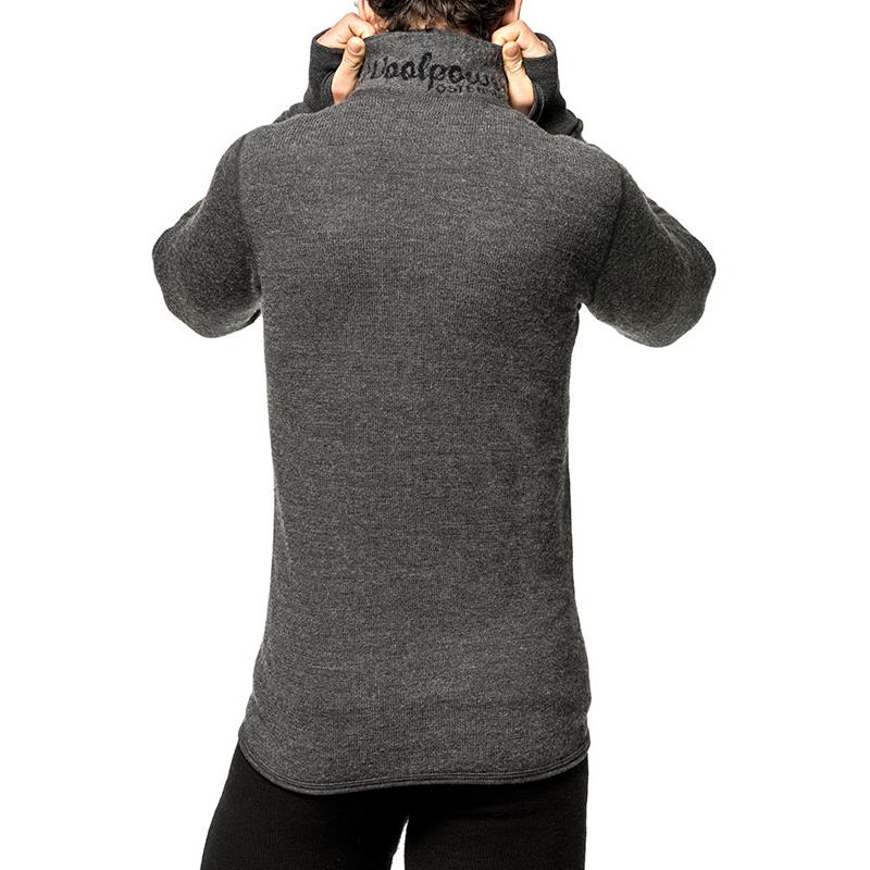 La giacca Full Zip 400 ha un collo alto a doppio strato nonché polsini con fori per i pollici. La parte posteriore è più lunga per evitare spazi, e il collo ha il logo Woolpower lavorato a maglia.