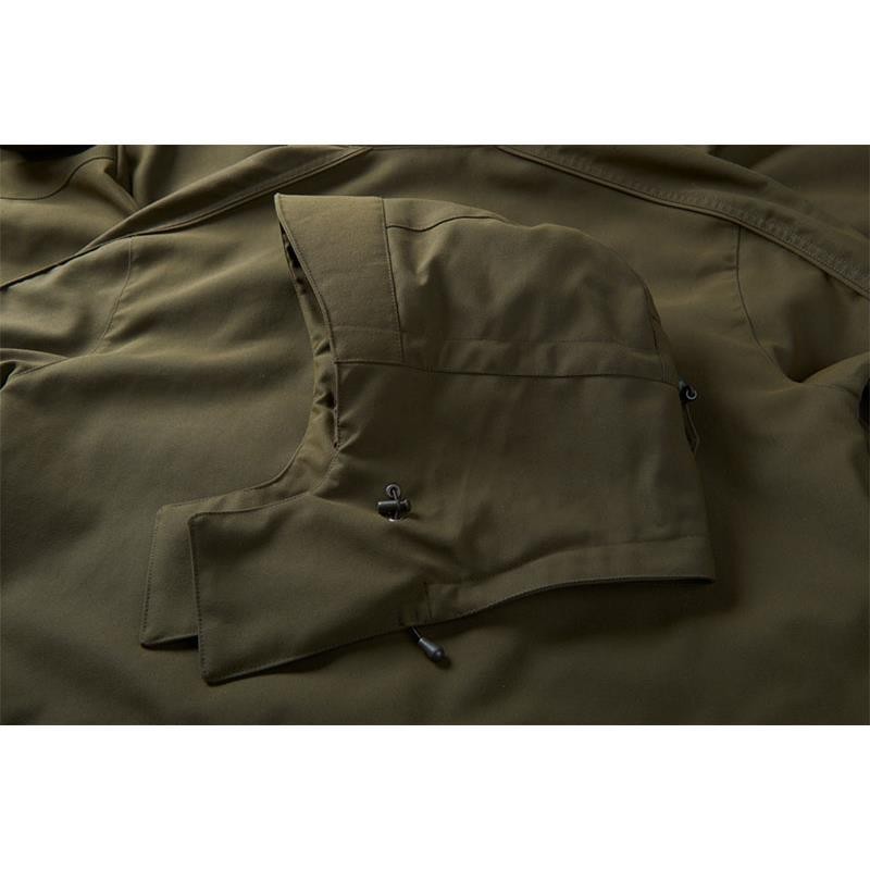 La giacca Pro Hunter Endure dispone sulla schiena di una grande tasca carniere foderata in nylon. Sulla parte alta del braccio sinistro si trova una piccola tasca dotata di una banda riflettente arancione per una maggiore sicurezza. Il cappuccio è removibile e possiede una visiera modulabile. Questa giacca ha un orlo, una vita e un cappuccio regolabili, nonché una patta di serraggio ai polsi. È chiusa da una robusta zip bidirezionale, protetta da una patta con bottoni a pressione. La giacca Pro Hunter Endure è coperta da una garanzia di 5 anni che si applica a tutti i difetti di fabbricazione e dei materiali.