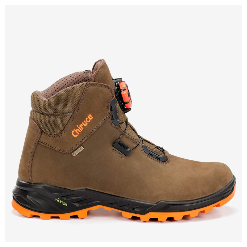 Caratteristiche : • Nubuck idrorepellente. • Cordura® idrorepellente. • Sistema di regolazione BOA®. • Fodera Gore-Tex Performance Comfort. • Suola a doppia densità. • Sottopiede in poliuretano. • Suola in gomma Vibram® Stone Hi Vis. • Peso: 635 g.