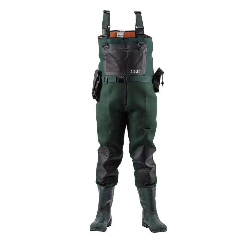 I waders Aigle sono pensati per la pesca. Confortevoli e versatili, sono dotati di bretelle per garantire un ottimo sostegno fino all'altezza del torace. Lo stivale è composto da gomma naturale e la gamba in neoprene per assicurare un'impermeabilità totale. L'impermeabilità di ogni waders fabbricato è testata ! Progettati per la pesca in acqua dolce, questi waders sono adatti a un uso quotidiano.
