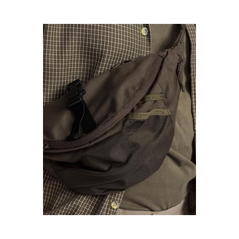 Pinewood Cross Waist Pack bevat ongeveer 4 liter en heeft meerdere vakken om het inpakken zo gemakkelijk mogelijk te maken. In het grote vak met rits vindt u een geïntegreerd veiligheidsvak. Onder aan de tas bevindt zich een netvak voor gemakkelijke opberging van uw waterfles, en aan de zijkant en aan de achterkant zijn twee kleine vakken met rits. Aan de zijkant vindt u een D-ring voor gemakkelijke toegang tot uw sleutels bijvoorbeeld. De breedte van de tas kan aan de bovenkant eenvoudig worden aangepast met een band en een druk-knop, afhankelijk van de hoeveelheid bagage. Voor een optimale pasvorm, stelt u de band aan de tas in (max 150 cm) en een druk-knop maakt het aan- en uitdoen gemakkelijk. De tas is ook waterafstotend dankzij een milieuvriendelijke behandeling.