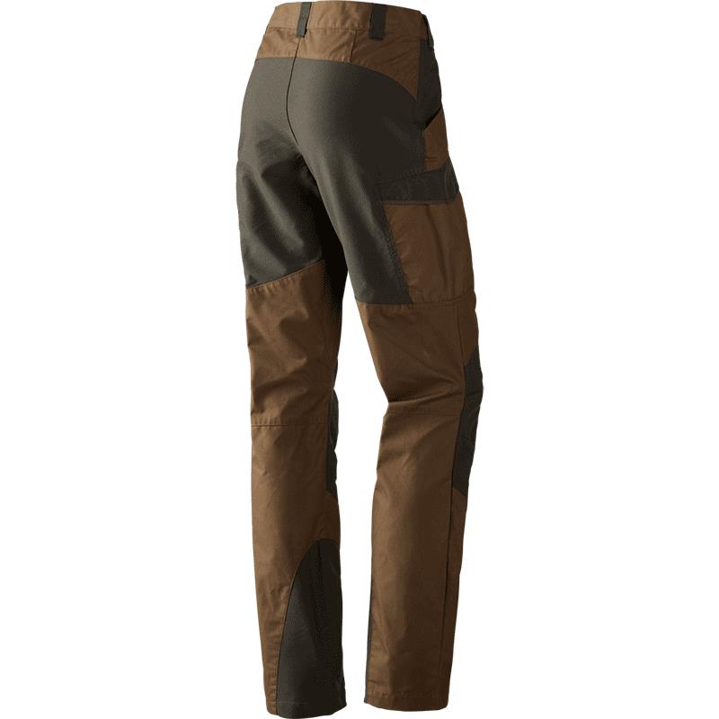 Moderne pasvorm en gewaxte afwerking. De broeken hebben waterafstotende stretchinzetten met DWR-behandeling, een sluiting met drukknopen, cargozakken en verstelbare pijpen.