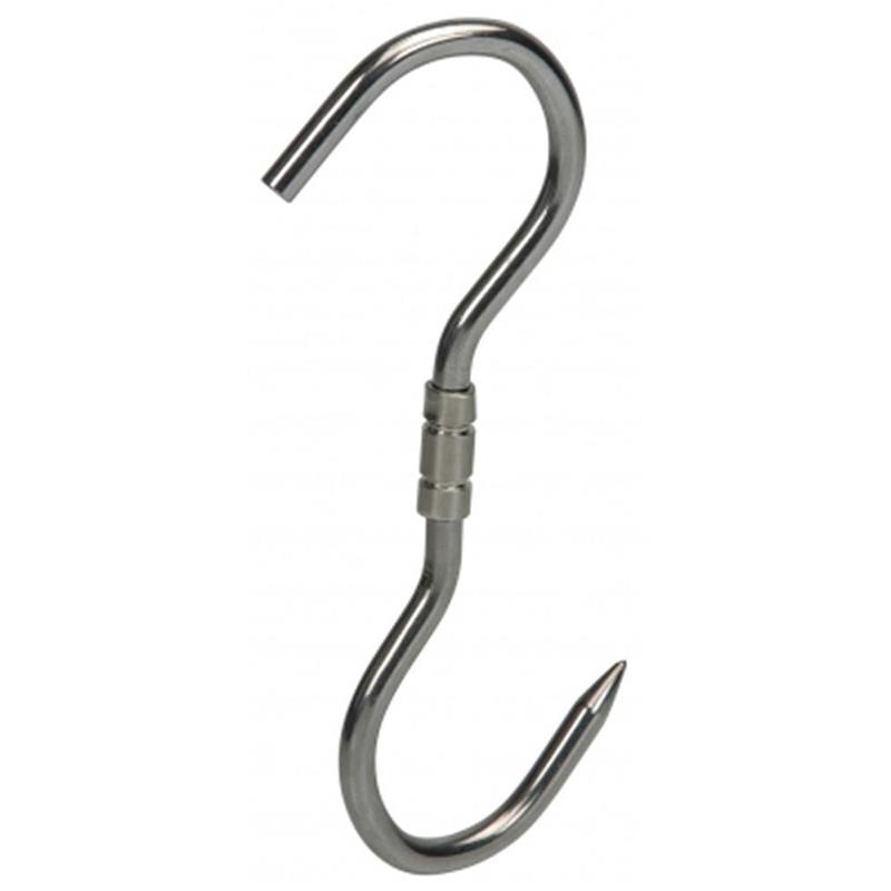 Draaibare esse-haak van roestvrij staal met één geslepen uiteinde, hoogte 260 mm en diameter 10 mm.